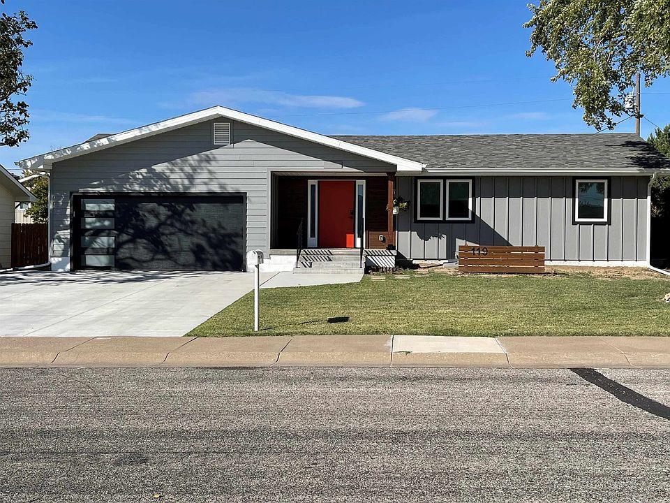This contemporary home is located in a new, desirable neighborhood, and has been totally upgraded inside and out. Entering thru the oversized front door you’ll say Wow!! The heart of this home is the kitchen with adjoining dining and family room making it ideal for gatherings. The all-new captivating kitchen has stainless steel appliances, quartz countertops, maple custom cabinetry, and an induction cooktop stove. The new ceiling is Armstrong ceiling planks with recessed lighting and crown molding. This beautiful home has new windows, flooring, doors, siding, concrete work, and so much more. If you desire an open floor plan and a move in ready home, then this is it!! Call Dale Haselhorst for a personal tour at 785-432- 1444...