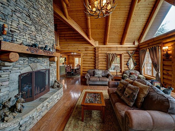 Public Remarks: Location is everything! This 4 bedroom/ 3.5 bath cabin is just 1 minute off of Exit 407 in Kodak, TN! The gateway to the Smoky Mountains. Currently used as an overnight rental, this cabin can sleep up to 12 guests. The Living room boasts a large stone gas fireplace, vaulted ceiling, huge bay windows and access to the spacious partially covered wrap around deck. You'll have plenty of room to host the whole family in the adjoining kitchen and dining room space. 2 of the 3 bathrooms have walk-in showers. The large master suite on the main floor has an attached bathroom with a jacuzzi tub and private access to the front deck. There are 3 more bedrooms as well as an additional room currently used for supplementary sleeping quarters. The 3642 sqft detached outbuilding acts as a climate controlled storage space and loading dock with separate mens and women's bathrooms all on the lower level. the second floor has an open floor plan with potential for an event space and 4 office spaces as well as a half bathroom. There are over 25 parking spaces, making the possibilities for this property all the more expansive.