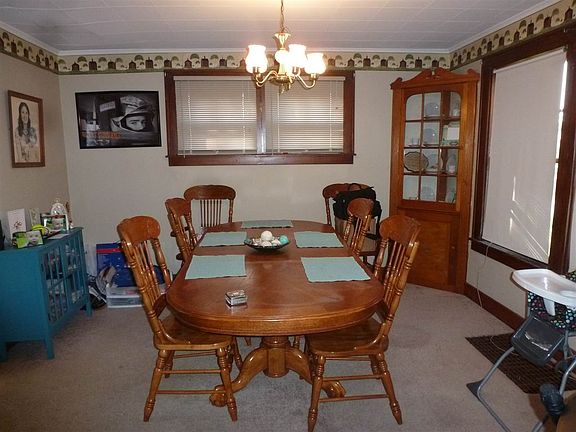 Four bedroom home located walking distance to the school. Large yard and come with some privacy and two detached garages. Nice size kitchen with lots of cabinets plus formal dining room. Large great room plus a full basement.