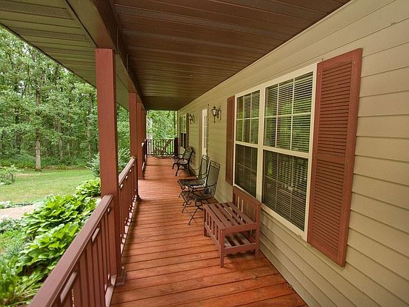 Beauty of a home on 3.67 wooded acres with lake access! circle Driveway will greet you to the huge covered front porch and incredible landscaping-home has a wonderful floor plan with enclosed breezeway as an extra family room featuring hardwood floors-lovely kitchen with pantry and center island-deck overlooking park like setting with lots of trees, gardens, fire pit and so much more-large master bdrm with bay window and walks out to private deck-living room was framed for electric fireplace-finished walkout basement with enormous family/rec room, 3rd bath and possible bdrm (has small egress window)-wooded splendor that leads to 6 acre shared stocked lake-2 car o/s drywalled/insulated garage-SOLD AS IS-pictures are from 2018'- 1 year home warranty