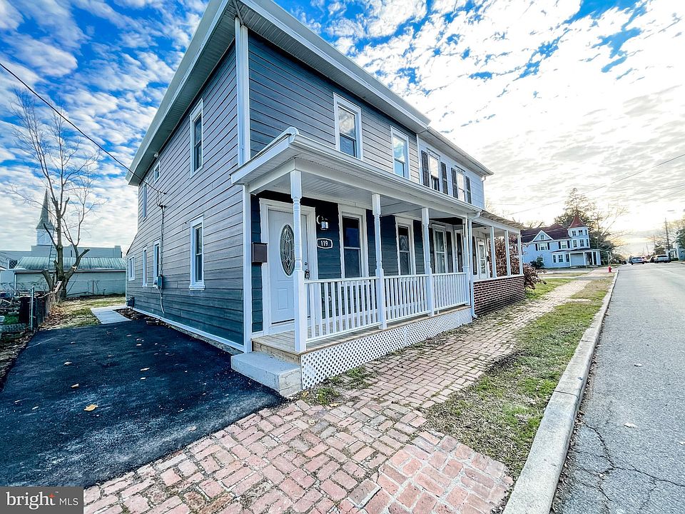 Welcome home to this beautifully renovated twin located in the heart of downtown Smyrna. Surrounded by shops and restaurants, this is the ideal spot for someone who is looking for a quaint and walkable area but still needs to keep a car or access major routes. When you first see this corner lot you will love the private 2 car driveway and dark blue siding with contrasting white trim that embellishes the covered front porch. Enter through the front door and you will love the bright and sunny living room with brand-new luxury vinyl plank flooring and neutral paint colors. Through the living room, you access the brand new kitchen with all new white cabinetry, new marbled tile flooring, new subway tile backsplash, new stainless steel appliances, and new granite countertops. The kitchen also houses the laundry room and the first-floor full bathroom which has been beautifully refinished to match the kitchen. Rounding out the main floor is a bedroom with the same LVP flooring as the living room and a private door to the backyard. Upstairs you will love that all three bedrooms have brand new plush carpeting and paint that is highlighted by all the natural light. The full bathroom upstairs exudes luxury with marbled tile surround and a brand new vanity with a white granite sink. This home is practically worry free with a brand new roof, new Hardie board wood siding, new windows, new HVAC, new hot water heater, new paint, new flooring, new kitchen, new bathrooms, and updated plumbing and electric. Don’t miss your chance to live out your small-town holiday dreams and book your tour today!