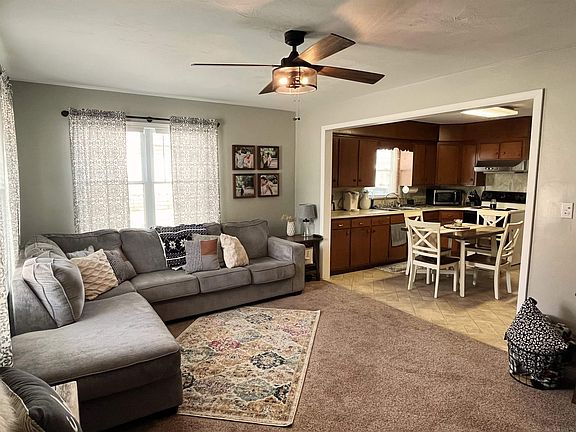 This quiet, easy to maintain, in town home is move-in ready and features newly updated living room, laundry room, and bathroom. A beautiful 2 bedroom, 1 bathroom home with double lot, large storage shed and 1 car detached garage! The interior of this home feels very spacious with an open concept style living, dining, and kitchen area. All appliances are included including the washer and dryer. This home offers plenty of storage space including room in the easily accessible attic space. Don't miss your opportunity to come see this perfect small town home!