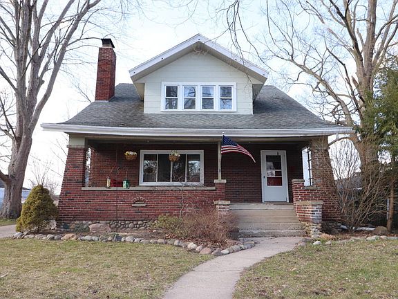 This large 4 bedroom 2 1/2 bath 1.5 story brick Craftsmen style home is walking distance from the downtown area & Central Elementary/Middle School. It features unique wood floors - arranged in concentric squares. Charm & character are abundant in the living room & classic oak mantle over the fireplace. Spacious kitchen with lots of cupboards and counter top areas. The large master bedroom has a sitting area & 3 closets + 2 other upper bedrooms. There is a 4th main level bedroom and a 5th office/ bedroom. Knotty pine family room / rec room in the basement gives you even more space to enjoy this home. Have morning coffee on the swing under the covered front porch then garden in the raised beds in the fenced backyard or work in 2.5 Car detached garage with work / hobby area. This must see home is a hard to find with all these special feature in the city.