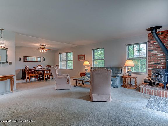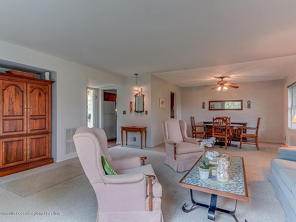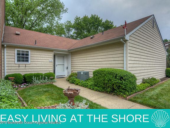 Desirable Augusta Ranch style, END-UNIT home in private setting for easy living. Gated-community for the ultimate security. Situated at end of cul-de-sac, with designated garage/parking. Enter thru private courtyard. This lovely home is warm and welcoming with open floor plan, spacious LR/DR area with sliding doors to private patio. 2 bedrms, 2 full baths, inviting wood-burning brick fireplace. Location provides substantial natural light. Great opportunity make the kitchen to fit your style. A great investment 1 mile to Spring Lake Beaches. Upscale community provides 18 hole executive golf course, heated pool, tennis, clubhouse. Great restaurants in area. Have it all at The Jersey Shore and luxury living. You deserve it! Detached garage across from home. Annual rental permitted