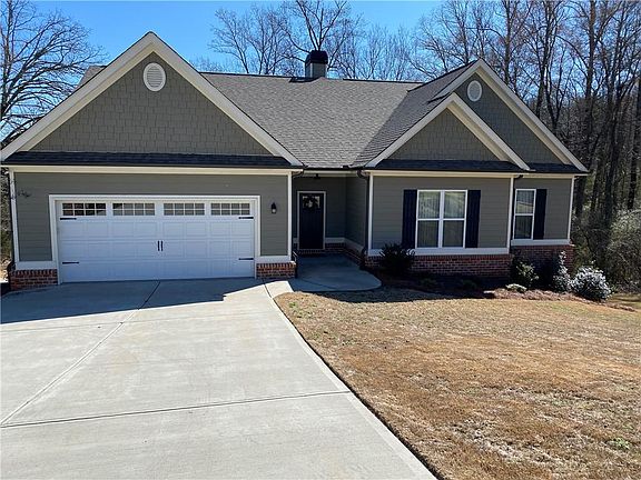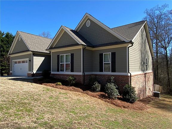 Nearly new ranch in great location. Kitchen with oversized island, granite counters, 42 inch cabinets, 10 foot ceilings and stainless steel appliances. Open floor plan. Craftsman style trim throughout. Vaulted family room with stone fireplace and gas starter. Pine floors in living areas and master bedroom. Oversized master bedroom with trey ceiling. Master bath with double vanities, granite tops, linen closet, tile shower and flooring, and walk in closet. Second bath with granite tops & tile floor & shower. Huge covered back porch with view of private nearly 7 acre lot. Crawlspace with up to 11 foot ceiling and concrete floors for lots of storage space. 900 square foot workshop with lean to covered shed perfect for boat/car/etc. Open floor plan is great for entertaining. Located just minutes to I85.