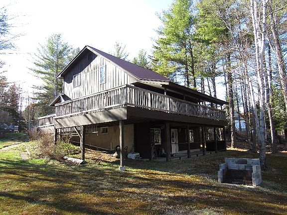 This home is in great condition tucked in at the end of Whispering Pine Drive on .65 of an acre.The home has a private setting and yet walking distance to the local school,stores,village beach,and Oak Mt.ski area.There is plenty of room for the whole family. The home has one bedroom and bath on the main floor,with a kitchen laundry area,dining room,living room, and a large porch over looking the back yard.The upstairs has an open loft,2 bedrooms,and a full bath.The finished basement has stairs down and its own entrance from the lower ground level out to a porch.Includes another bedroom,full bath,family room and a storage furnace room.The home has an attached garage,automatic generator,paved driveway,2 sources of heat, and village sewer and water. There is an additional building lot included with this property .25 of an acre. The lot adjoins this and is a APA and town approved building lot.This is really a beautiful family home and a must see... by appointment only.Both properties combined consist of .09 of an acre.