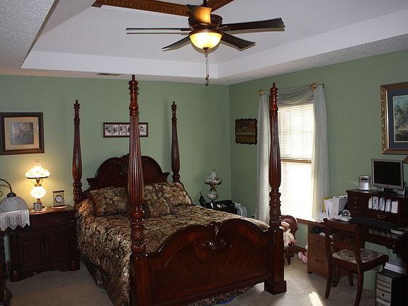 Split floor plan, natural trim, partially fenced backyard, mature shade, recent carpet & paint, neat & clean, vaulted ceiling.