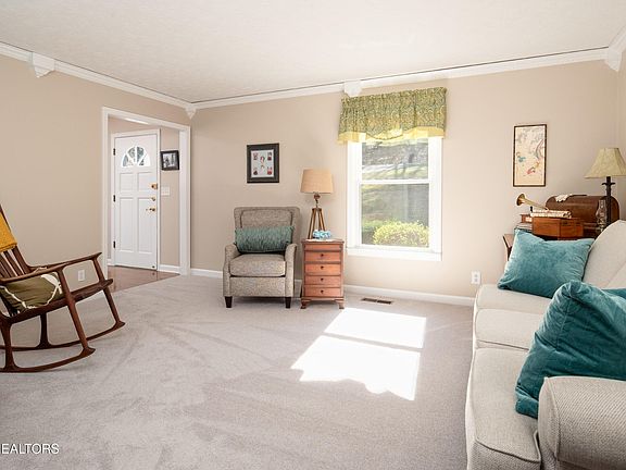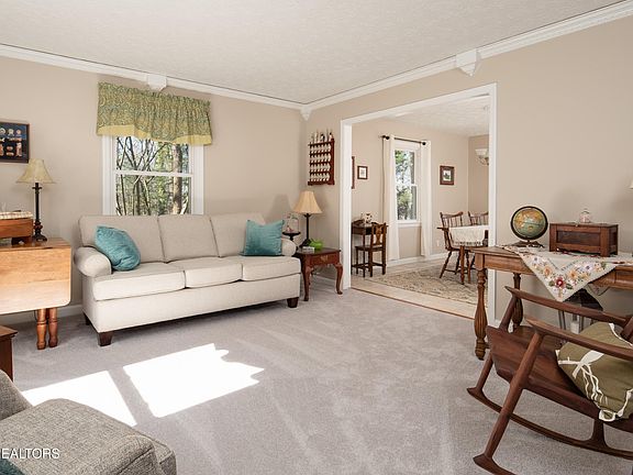 This meticulously maintained 3-bedroom, 3-bathroom home is situated on a beautifully landscaped nearly one-acre lot featuring mature flowers and bushes including hostas and day lilies, a pristine patio, a spacious newer deck, and a circular driveway. The property boasts generously sized rooms and a modern kitchen equipped with high-end Kitchen Aid appliances. The main floor includes a formal dining room and living room, as well as a den with a ventless gas fireplace and elegant built-ins. The wood floors are absolutely gorgeous. Upstairs, the primary suite offers a stunning bathroom with cherry vanity and ample closet space. The secondary bedrooms are both well-proportioned with plenty of closet space. The hall bathroom has also been updated and features an attractive cherry vanity. The third bathroom is conveniently located on the main floor near the laundry room and garage, ideal for cleaning up after yard work. HVAC is heat pump (electric), Fireplace and On demand water heater are gas. Roof replaced in 2015. The home has been freshly painted and is truly move in ready. The attached two-car garage, spanning 575 square feet, provides adequate space for vehicles or recreational equipment. Additionally, a detached carport with an adjoining workshop/shed caters to project enthusiasts. The shop IS insulated and has electricity! There is a storage shed for your tools etc. The circular driveway facilitates easy access for gatherings and maneuvering larger vehicles. There is a community pool available with a nominal fee for membership yearly. This property is located just 20 minutes from Oak Ridge and Kingston, and is awaiting a new owner. Buyers to verify all information.