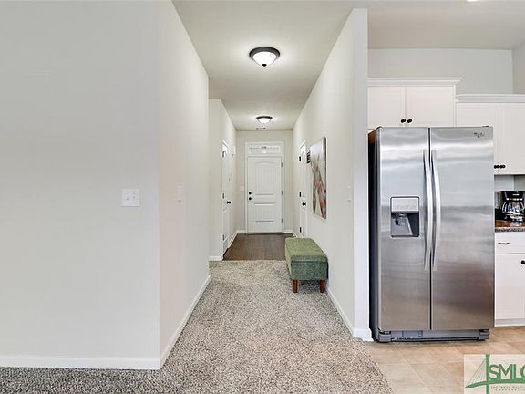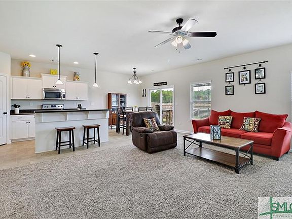 Desirable South Effingham school district. The living is easy in this cozy, generously proportioned residence with views of the community lake!The "Leyton" floor plan encompasses three spacious bedrooms, two luxurious bathrooms, family room extending to a large eat-in dining room, 9â ceilings throughout, Shaw Frieze carpet, oil-rubbed bronze fixtures, kitchen featuring staggered-height white cabinetry, European hinges, Whirlpool stainless steel appliances, and more!Master suite, complete with large walk-in closet and master bath with double vanities and bronze fixtures. Off-street parking. Sod and irrigation in the front yard.With its warm sense of community, and a short drive to restaurants, shopping, and schools, this home provides all the elements for relaxing and easy-care living!