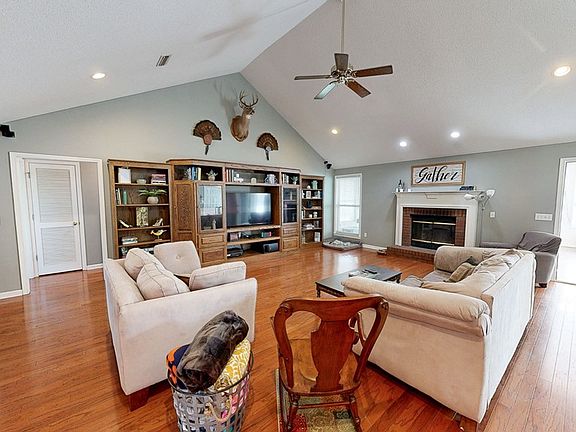 Set on nearly 1.9 peaceful acres in the Willow Oaks Subdivision, this property offers the space and flexibility today's buyers crave. The main home features 3 bedrooms, 2 bathrooms, and a bright, open 2,205 sqft layout PLUS a private 1 bed, 1 bath guest suite inside the 1000+ detached garage, perfect for multigenerational living, a home office, or hosting long-term guests. Inside the main home, the galley kitchen includes granite countertops, white cabinetry, stainless appliances (with a new dishwasher in March), and a pantry. There's a formal dining room, a spacious living room with a wood-burning fireplace and built-ins, and a heated/cooled sunroom that adds bonus living space. The primary suite includes tray ceilings, a walk-in shower, double vanity, and generous storage. Flooring throughout includes stained concrete, laminate, and tile in the baths. Outside you'll find a 2-car attached garage, a partially fenced yard, and a 1-car detached garage with workbenches, storage, and that fully equipped private suite. Brick and vinyl siding make for low-maintenance curb appeal. A versatile and inviting home ready to meet a variety of needs.