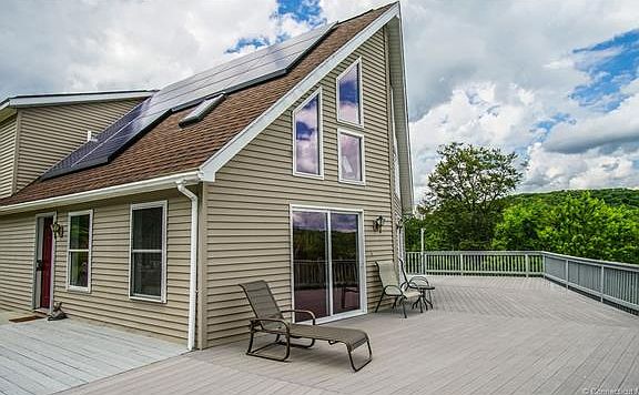 There is so much to enjoy here! A unique home in a one of a kind location with total privacy and timeless views across the Litchfield Hills. The parcel borders Norfolk Land Trust property that features miles of trails for hiking and skiing. With open lawn, fruit trees, garden areas, and an abundance of birds and wildlife, the huge wraparound deck and two stories of windows in the Great Room truly provide nature at your doorstep. Solar panels and a combination Newmac wood/oil furnace are modern energy saving features. Skylights, a cathedral ceiling, a loft space with wonderful views, and an easy to finish walkout basement are just a few of the features in this thoughtfully restored home. The Master Bedroom suite is spacious and comfortable with walk in closets, and a tiled bath with a Kohler jet tub and separate shower. The oversized Garage has 12' ceilings and a propane heating unit, and the upper level has two attractively finished rooms that make ideal office and studio space. You are minutes from Dennis Hill and Haystack Parks, the village of Norfolk with it's wonderful library, the Yale Summer Music Festival, and the Infinity Theater, and Winchester Lake. Come see this ultimate country retreat for yourself!