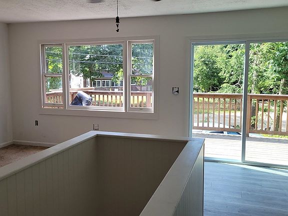 Still completing renovation, this 3 bedroom chalet offers bright and airy living on upper level with open kitchen and dining and livingroom, full front deck overlooking landscaped front yard and circular driveway; large bath, laundry and large masterbedroom; lower level offers 2 more beds and family room, open utility room with new fhw boiler and vinyl plank throughout... still finishing touches needed, but chance to get in by September... walking distance to pools, tennis, lake ; great investment rental or year round living... Showings begin 7/19/2022