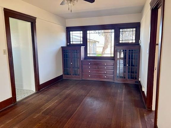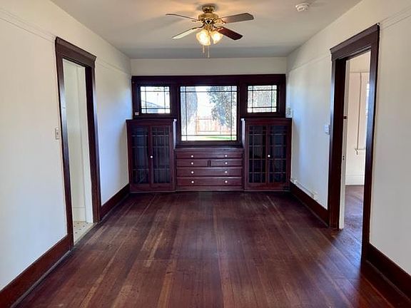 Classic South Salinas home with custom cabinets and details that you don't see anymore. This two bedroom home with pass through bathroom is a great opportunity to complete a light remodel and move right in or customize the home to your dreams. There is a detached garage, which could be an ADU conversion option. As you enter the home you are greeted by a light filled living room with wood burning fireplace, just off from there is a formal dining room with beautiful built in cabinets and view of the spacious backyard. The kitchen has floor to ceiling built in cabinets, deep sink and laundry room just off from there with access to the backyard. The two bedrooms are roomy with a pass through bathroom between them giving access to each bedroom to the bathroom. The home has hardwood floors that are in good shape. They were covered by carpet for many years and have just been exposed. Consult a flooring expert on bringing them back to their original glory. Property Sold AS-IS.