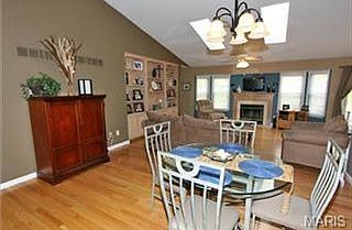 Welcome to this fabulous home ? a vaulted, open, split bdrm, ranch has uniqueness & customizations. Wood floors run thru the foyer, dining room & great room; while the kitchen, brkfst room & baths are tiled. Most of the ceilings are vaulted, plus there are skylights in the great room for added light. The bay window highlights the wood-burning fireplace & the built-in bookcases add storage. Enjoy the new oven, the Corian countertops, & the loads of cabinetry in the kitchen, & the easy access to the stamped patio from the brkfst room. There?s even a main floor laundry off the over-sized garage. The vaulted master suite offers a huge walk-in closet, updated bath including new vanity (dual sinks) & shower encasement. The lower level offers even more living space with a full bath, family room & a recreational room (including a bar area). The backyard is nicely landscaped & the cul-de-sac street offers additional privacy within the neighborhood. The sellers are offering a home warranty too!