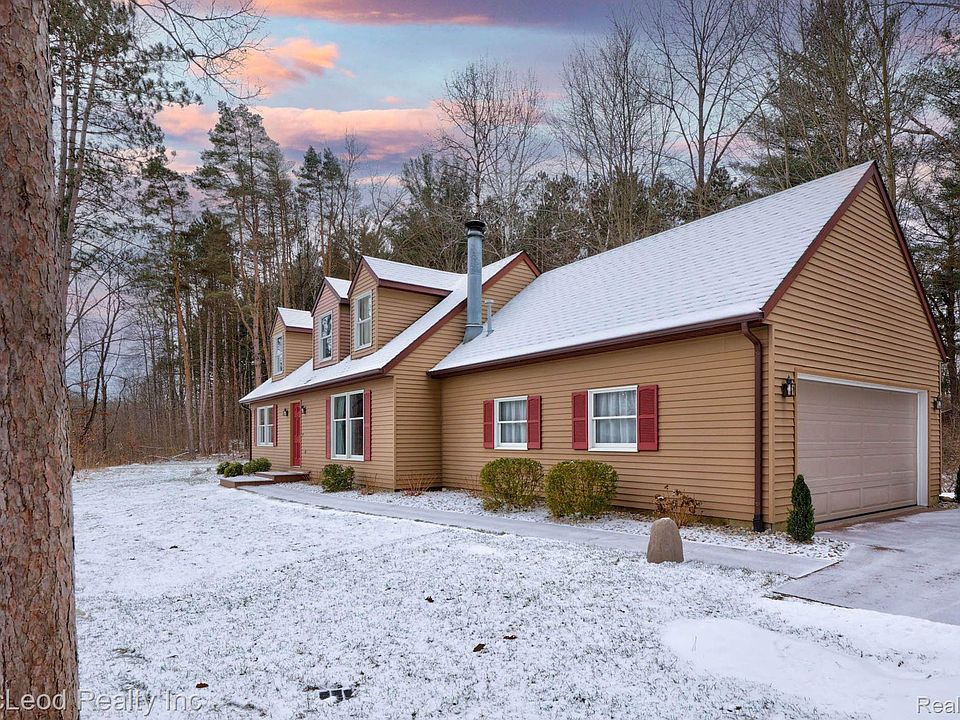 This beautifully maintained Cape Cod home offers the perfect blend of comfort and natural serenity, situated on a stunning 3.41-acre, 90% wooded lot that provides a true cabin-like feel. The property showcases complete pride of ownership, starting with the paved driveway leading to a spacious two-car attached garage featuring electricity, a side entrance, a modern door opener, and gorgeous epoxy flooring.
