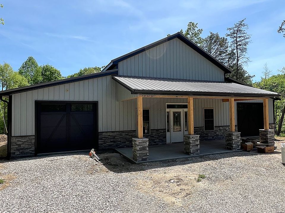 Barndominium is in the final phase of new construction! This one-of-a-kind barndominium is conveniently located in a very desirable area between Corbin and Barbourville KY. It is situated on a 3-acre lot which has an abundance of flat land that could accommodate a swimming pool, storage building, extra garages, and even another home! The barn-dominium features his and her garage, a large open floor plan with tall ceilings, a large master bedroom, a large walk-in master shower, a walk-in pantry, front and back covered porches, rock fireplaces, on-demand hot water heater, 2 separate HVAC units, open cell insulation throughout, and so much more! Final interior completion decisions could be made by the buyer, such as paint colors, flooring, cabinets, and light fixtures.