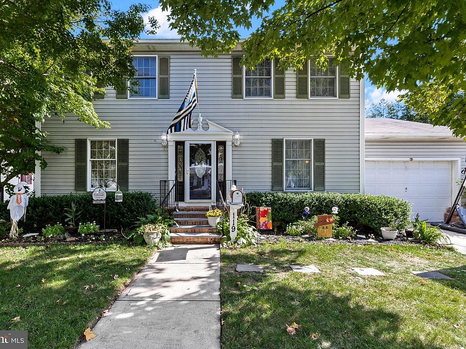 This 4 Bedroom, 2.5 Bath colonial nestled in the heart of Merchantville is just 2 blocks from the Community Center park & playground and local downtown shops and restaurants! Built in 1990, this property features charming curb appeal with vinyl siding, driveway parking with an Attached Garage, as well as a fenced in rear yard with newer Deck and Patio. Entry foyer showcases the original hardwood floors which run through the front facing spacious formal Living and Dining Rooms. Brand NEW (Oct. 2022) Carpeting runs throughout the stairs, 2nd level hallway and ALL 4 Bedrooms!! Updated and Large Eat-in Kitchen boasts rich oak cabinetry, Granite counters, 16x16 ceramic floor tiles, newer appliances and a large dining space. Cozy and bright rear Family Room offers laminate flooring and a wood-burning Fireplace along with slider door access to the Deck and fenced in yard. The main floor also features a half bath and a nice sized Laundry/Mudroom with outside access! Upstairs boasts 4 bedrooms, the Primary suite includes 2 closets, one a walk-in, and an updated Full Bath. Guest bedrooms share an additional hall full bath, also recently updated and you'll also find a hallway linen closet and pull down stair access for tons of Attic storage. This home sits over a FULL Basement with that "new" construction high head room for any of your needs. Already partially finished, this basement includes a drainage system and several built-ins, and will add another 500+/- sq.ft to the home's already spacious layout. Replacement HVAC and Hot Water Heater all within the last 5 years, plus this home comes with a 1 year HSA Warranty including Roof leak protection for buyers peace of mind!!!