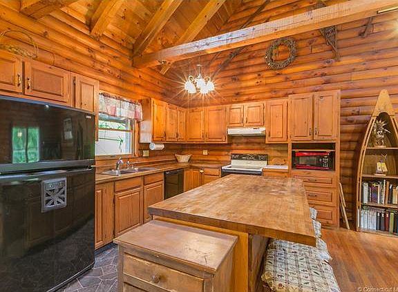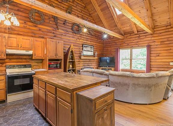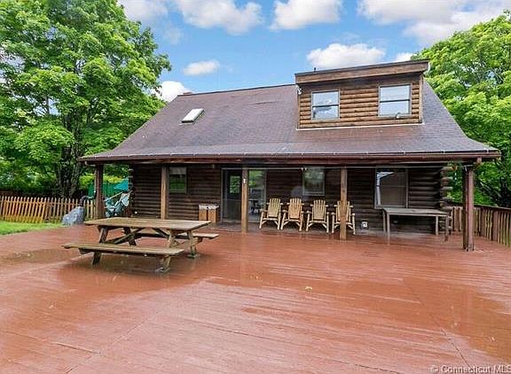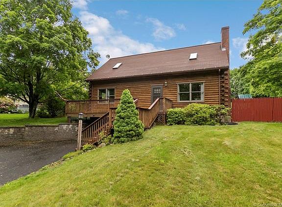 This Log Home is a slice of heaven! Many Updates Include: Newer Septic, Buderus Furnace, Oil Tank, Paved Driveway, Landscaping & Retaining Walls. Entertain in the Open Living & Kitchen Area. First floor has a Large Bedroom, A spare room currently being used as a Bedroom, Living Area, Kitchen & Full Bath w/Laundry area. The upper level has a Private Master Bedroom w/Full Bath. The outdoor space is nearly an acre. The front wrap around porch is huge and offers outdoor living space. One Car Garage is located under. The lower level is partially finished and is ready for your touches! A must see & is a incredible value at this price! Won't last long!