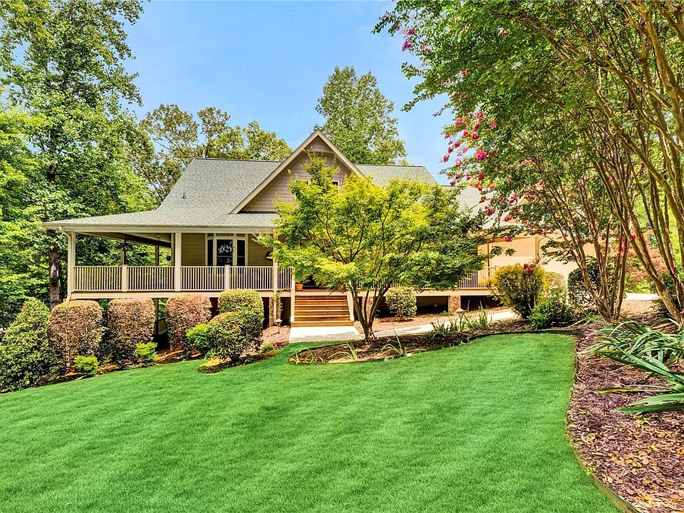 If you are looking for a home on the shimmering teal blue waters of Lake Keowee that will accommodate the largest of gatherings, look no more! This beautiful home is perfectly situated on a private, peaceful, no-wake cove with water on three sides. As you step onto the wrap around front porch and into the main level you will be struck by the enormity of the dining room, which works well with the spacious kitchen and living room. There's a seat for everyone! Off the kitchen is an ample pantry and laundry.Gleaming oak floors and 9'ceilings complete the gathering areas. Right through the oversized glass doors is the back porch with an exhilerating view of the lake, only steps away. Also on the main is the private owners suite with walk-in closet and generously sized bathroom. Venture upstairs and you will find three spacious bedrooms, bathroom, a loft sitting room and office (which could be used for overflow sleeping) and more storage than you can imagine. Travel down the hallway and you will find a separate bedroom/flex room and half bath above the garage for guests. There is so much potential to make the upstairs whatever you would like! Downstairs is the expansive rec room-perfect for game tables, giant TVs and all kinds of entertainment. Because there is a full bath you could easily divide the space into a bedroom, etc. In the unfinished part of the lower level is even more storage and a workshop.This amazing home boasts two newer gas furnaces, two newer A/C units, two hot water heaters, a whole house vacuum, an irrigation system for the front manicured yard, high speed internet and more. The true star of the wonderful retreat is, of course, the location on the lake. Within just a few steps on the gentle lot you can enjoy a completely covered dock and a small natural beach. This site is absolutely one of the nicest and most desirable on Lake Keowee. The neighborhood is not part of the Cliffs Communities so no huge HOA fees! The neighborhood offers a pool and pool house, boat launch, and day slips as well as a dry storage area. It's the best of all worlds! Honestly, whether it is a crowd of happy folks enjoying all the water sports you can offer, or just a day of lounging on your back porch with a good book, your heart will be full. The love and care that built this one owner home will continue with you and your personal touches.
