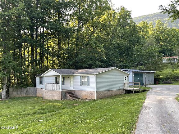 Manufactured home on permanent brick foundation with huge yard and oversized storage in the rear! Convenient to Oak Ridge and surrounding area. In need of a little sprucing up, but very little and can make your own! Great front yard and covered front porch!