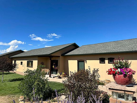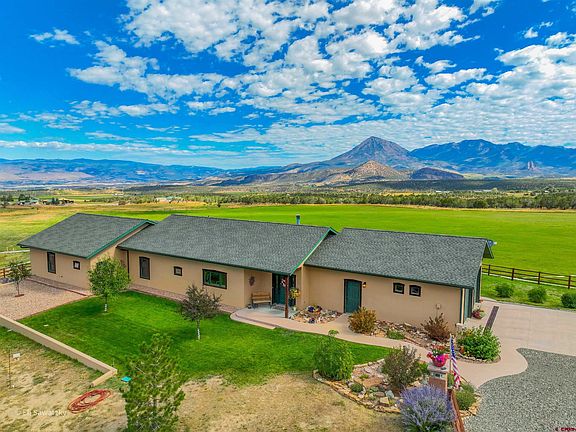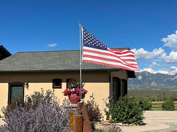 INCREDIBLE VALUE, Priced to Sell, Spectacular Views, Spacious Custom Ranch Style Home w/Stylishly Finished WALK OUT BASEMENT on 45+- Acres. Lovely Barn with Stalls, and Automatic Waterers. 184' x 93' Manicured HORSE ARENA. 20 acres of IRRIGATED GRASS HAY GROUND, 6 acres of irrigated pasture too. Don't want to take care of the land?...just want to Enjoy and Relax...NO PROBLEM, EASY to LEASE or SHARE CROP with a Friendly Neighbor! Perfectly positioned in WESTERN COLORADO with Million Dollar Views. Property has TWO DOMESTIC WATER TAPS and a second home could easily be built. 1,000 shares of Fruitland Irrigation water. WILDLIFE ABOUNDS, Mule Deer, Elk, Bears, Foxes, and Turkeys. Features hardwood floors throughout key areas. Home boasts solid KNOTTY PINE interior doors and trim throughout. Spacious Primary Bedroom with custom tile walk-in shower, enormous WALK-IN closet, and a 2nd closet as well. Lovely kitchen with pantry and large center island/bar. Solid Maple Cabinets throughout the main floor. Open Concept Great Room with large PICTURE WINDOWS looking out at the West Elk Range of the Colorado Rocky Mountains. Basement features a large workshop, a studio/office/craft room, a custom tiled walk-in shower in the bathroom, a bedroom with egress window, a den/media room, a game room/workout room, and a huge storage room with shelves installed. Hunter Douglas window and door coverings throughout the main floor, and new exterior lamp lights with tasteful landscaping. DECK and Walk-Out Patio Dining spaces for outdoor enjoyment. 2 car attached garage is heated and finished. There is also an attractive and very well-built 40' x 28' Barn with Tack Room and Stalls for your animals, 24'x 36' Metal Cleary Building for equipment or hay storage, metal piped corrals with 2 automatic waterers. Gated irrigation pipe will come with the property. Property is fully fenced and cross-fenced. 1000 Gallon Propane Tank (Owned), Hot Water Circulating System, QUALITY 2'x 6' construction throughout.