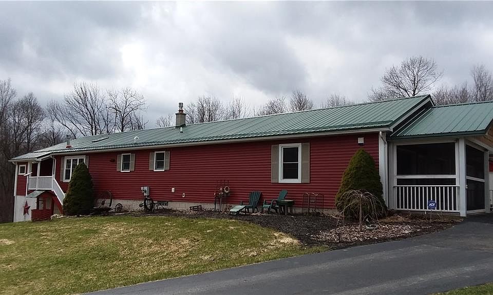 Horse lovers & outdoor enthusiasts!! A ranch home on 29 Acres,adjacent to the NY State Lands (Carlton Hill Recreation Area) This ranch home has 2 bedrooms on the main floor along with a finished basement with walk out to yard and patio. 2 gas fireplaces. New walk-in main bath. The 2 bonus rooms in basement could easily be additional bedrooms complete with a newer half bath. Recently converted sun porch off living room.Tons of storage throughout! Security system, Generator, Metal roof, screened in porch, 2 attached 2 car garages-both insulated w/electric, one built in 2018, blacktop drive, gazebo, newer gutter system, windows. Perfect picnic area w/enclosed pavilion tucked back in woods with shed! Schedule your showing today!