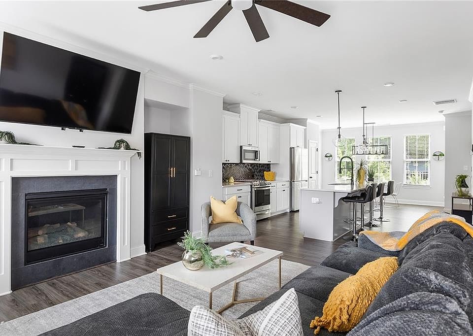 This nearly new 3-bedroom, 2 full bath, 2 half bath townhome blends modern design with comfort and convenience in one of Acworth’s most desirable master planned communities just became one of the best values in Buice Lake. Newly priced at $360K, it’s move in ready, upgraded, and perfect for buyers who don’t want to compromise. The open concept main level is perfect for entertaining, with a kitchen that overlooks the dining area and family room complete with log fireplace. Designed with both style and function in mind, the kitchen features upgraded cabinets, quartz countertops, and one of a kind custom backsplash installed after closing. Upstairs, the spacious owner’s suite includes a large walk in closet, double vanities with quartz countertops, and an upgraded frameless glass shower. Two secondary bedrooms, a full guest bath with upgraded subway tile, and a conveniently located laundry room complete the upper level. The terrace level offers a large flex space with a half bath ideal for a home office, gym, or additional entertaining area. Step outside to enjoy the covered deck or take in private, unobstructed wooded views from the front of the home while relaxing in the kitchen or dining area. Neighborhood amenities include a pool, clubhouse, tennis, pickle ball, playground, fire pit and scenic lake trails all just minutes from shopping, dining, and I-75. Priced to sell, this home is an excellent opportunity for first time buyers or anyone seeking modern living in a vibrant community.