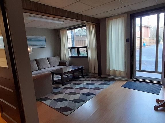Furnished, short term, one bedroom apartment. Weekly or monthly. $550 per week. Separate entrance, not shared, tastefully furnished. Walk to Clarkson Go Train, Mississauga transit, shops and restaurants. 15 minutes to airport, 1 hour to Niagara Falls and wineries, 1/2 hour to Toronto. Comfortable quiet setting on one acre. Includes wifi, AC, and utilities plus parking for one vehicle. Willing to rent weekly at $550. No smoking. No pets. Adults only. Parking for one working vehicle. Wifi included as well as utilities. Fully furnished. AC in the summer.