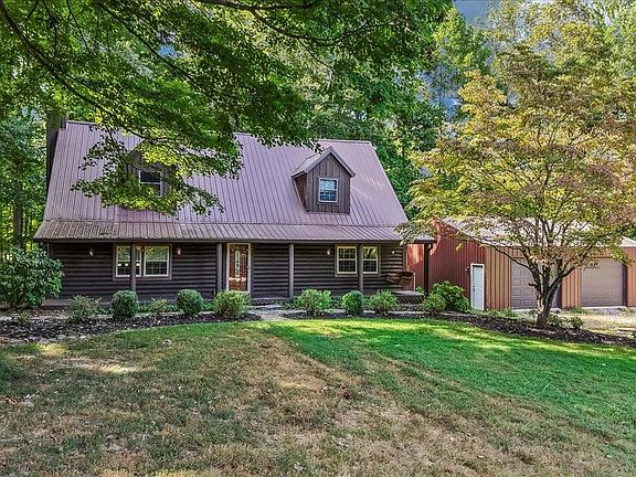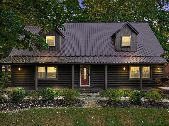 Nestled in the highly desirable Alvaton community, this meticulously maintained log cabin offers the perfect blend of country living and modern comforts. Situated on 5 acres of tranquil, mature land, the property provides both privacy and a peaceful atmosphere while being just a short drive from all the conveniences you need. The spacious front porch invites you to relax and enjoy the serene surroundings. Inside, you'll find a recently renovated downstairs, including a fully remodeled kitchen with updated appliances and finishes. The main level features stunning hardwood floors, a cozy stone fireplace (converted to gas logs for easy use), and an inviting, open layout that’s perfect for family gatherings or quiet nights at home. Upstairs, the expansive master suite is a true retreat, offering a huge attached sitting/bonus area, a large walk-in closet, and an en suite bathroom. Two additional generously sized bedrooms provide plenty of room for family, guests, or a home office. The large, well-designed family bathroom ensures comfort for all. For added convenience, a detached 2-car garage/shop provides ample storage or workspace for hobbies, vehicles, or projects. The property is adorned with mature trees that enhance its natural beauty, adding to the peaceful setting that defines this charming home. This home truly offers the best of both worlds—quiet, rural living with modern updates and easy access to nearby amenities. Don’t miss the opportunity to make this beautiful property your own! Selling As-Is with Inspections.