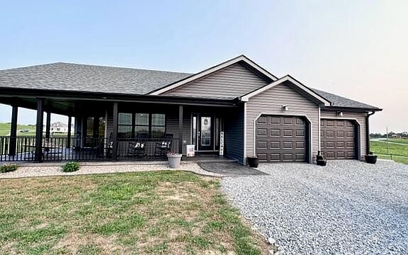 Welcome home! This gorgeous property has so much to offer. This newly constructed home sits on 2 acres just outside of town. Come relax on the large front porch or soak in the hot tub on the back porch. This property offers a new hoop barn with water lines to all pastures for livestock. Park your RV, boats, or trailers in the extra-large driveway. Inside you will find a large open great room with french doors leading to the porch. The kitchen offers stainless-steel appliances, granite counters, large island with breakfast bar and walk-in pantry. The primary suite and bathroom are spacious with a soaker tub and large walk-in closet. There are 2 additional bedrooms and 1.5 bathrooms in the main home. Upstairs provides an additional 604 sq ft finished bonus room that is wired and ready for a mini-split heating/cooling unit. There is also a large walk-in attic space for storage. Attached to the back of the home with exterior access via ramp is an in-law suite with living/eating area, kitchen, utility room, primary bedroom with full bathroom, and an additional bedroom. Under the in-law suite is standing height conditioned crawl space perfect for storage or shop. Must see property!