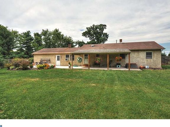 Brick and stucco ranch home on more than an acre of flat, fenced ground in Perk Valley schools. Kitchen has been completely refreshed with granite counters, punched tin back splash, recessed lighting, and flooring. Office area has floor to ceiling brick fireplace with insert, vaulted ceiling with fan, Pergo tile flooring. Original hardwood flooring carries through quaint dining area and freshly painted living room with recessed lights and coat closet. Three bedrooms on main floor, all with ceiling fans, and Master has custom, cool pendant lighting and Wainscot ceiling. Basement has a finished room that could be fourth bedroom, laundry area, Bilco door, and Pex plumbing system. The back yard has amazing space with patio that runs length of home (54x12') with a portion of it under roof (40'). Beautiful plantings, two car garage, entire home has been rewired, new water lines, and newer windows. Peaceful country setting, down the road from Skippack Pool!