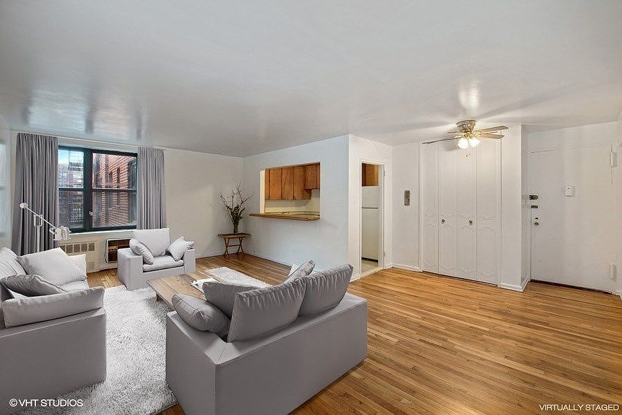 CONTRACT OUT!Kings Village cooperative is home to this spacious 2 bedroom unit! This sunlit apartment features a very spacious living room with dining area, pass-thru kitchen with new floors and original appliances. Newly restored hardwood floors, 2 walk-in closets with overhead lighting, king size master bedroom and queen size second bedroom, abundance of closets and storage throughout the unit. Laundry and storage on site. Part-time doorman. Located on the 5th floor facing front of a 7 story building, in a quiet residential area. Parking available on a availability basis. 3 short blocks to amenities/shopping and public transportation B46 bus + B46 Select bus service.