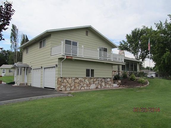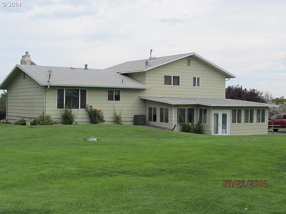 Reduced $15,000. newer a/c compressor. new septic lines in 2012 two tax lots #300 has 2.51 acres. lot # 200 has 3.49 acres. home and buildings on tax lot #300. Shop. chicken house. tool shed. kitchen with tile flooring. dining room with laminate flooring. 2 family rooms. great view of Hermiston. Deck access from 2 bedrooms. New flooring in basement in 2017.