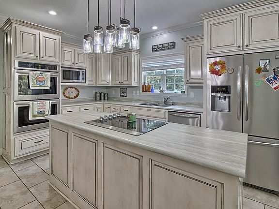 Beautiful 2-story brick home located just outside city limits was built in 2003. Kitchen has custom cabinets, tile floor, cooktop island, gallery S/S appliances and eat-in table area. Designated dining room and large family area with double french doors leads to grilling area outside. Massive master suite with double walk in closets in bathroom. Upstairs has bedroom, common room and bathroom.