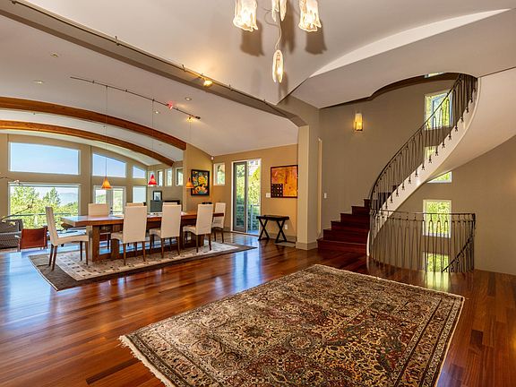 Beautiful, modern luxury home perched on top of the Claremont Hills with bright, spacious entertainment spaces and stunning views of the San Francisco Bay -- available furnished or unfurnished. Built in 2001, the spacious living area is full of unique architectural elements, like the arching curvi-linear silhouette with striking wooden ceiling beams, Brazilian cherry and Canadian maple flooring, and stylish metal barrel roof. The chef's kitchen, wet bar, granite countertops, luxury Miele appliances, expansively-tall ceilings, large picture windows, well-lit living areas, four balconies, and spiraling Brazilian cherry staircase make this home an ideal place for tranquil relaxation and entertaining guests. The skyline views of SF and the bay amaze all, while the large and well-maintained, wrap-around yard on the nearly 1/2 acre lot leave lots of room for relaxation and fun. The top floor houses the master suite, bathroom, jacuzzi-tub, dressing room and an office or bedroom. The open layout main floor includes the kitchen, wet bar, entry way, powder room, and the dining and living rooms. Both of these floors have full SF views. The attached two-car garage that includes the washer/dryer is level with the main floor. The lower floor includes two bedrooms with walk-in-closets, a full bath, and a family room leading to a backyard with a kid's playground, and also with full SF views and ideal for garden parties. The home is minutes away from bustling downtown Rockridge, Berkeley, and Montclair neighborhoods, UC Berkeley, public transportation and major freeways, top-rated schools and shopping, farm-to-table restaurants, the Claremont hotel, tennis, pool, and golf clubs. - Available August 1st - Preferred 12+ month lease - One month rent deposit - If desired furnished, furniture deposit or rent may be required depending on the pieces selected. - Dogs (MAYBE cats) considered (additional deposit + pet rent required) - Owner maintains landscaping and pays trash. Tenant pays other utilities. Trash, recycling, green waste, and yard maintenance included. Tenant pays other utilities. No smoking. Private driveway and garage. Furniture is variable extra fee depending on desired pieces.