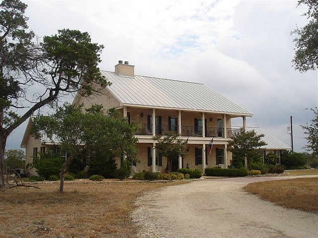 Breath taking hill country views from the great room and front and back balconies of this quality built traditional home. Great workshop area, crown moldings and much more. Two fireplaces, wonderful porch. Good horse country with sheep mesh type fencing. Quality, gourmet kitchen with butler's pantry. Breeze way connects oversided 3 car garage. Walk up stairs to large storage area.