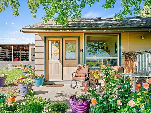 Country roads take me home! Westside 8.71 irrigated ac. w/immaculate single-story home & stunning views of the Stuarts & endless fields. Inside home find a country kitchen w/slate floor, large dining/gathering area, quiet living rm, bonus rm w/French doors to charming garden patio. Bring your vision (sunroom for you avid plant lovers? Extra space for guests? Follow your heart!). Country chic bathroom w/walk-in shower & refinished antique claw foot tub. Outside find a Large 4 bay heated shop & storage areas (2 w/doors)vacuum & compressor, 3-stall horse barn w/matted stalls & tack room w/concrete floor, several garden areas, fruit trees, & expansive lawns. Easy access to I-90, Newer well (2015) New Roof (2023). Gated pipe included.