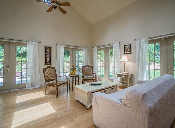 A wide-open and unique home for buyers not wanting the same old run-of-the-mill Mid-Century Modern floorplan. An artist's dream home with a European flair. Tons of wall space & light. For those who love to cook & entertain...Bon Appetite. Gourmet Kitchen features wine cooler, condiment cooler, prep sink, walk-in pantry, commercial style range w/convection oven. Large vaulted Family Room w/skylights, French doors flow to the covered Patio & spectacular Outdoor Kitchen. Blackberries, blueberries, fig, pear & Peach trees. 2 Master Suites w/spa baths, 1 on step-less main level. A golf cart ride to Roswell's Canton St. A Foodie & Entertainers heaven! Eco-friendly 500 gallon rainwater collection tank -- irrigate without using city water!