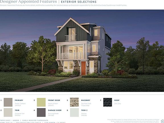 Presenting Twin Oaks Arbor three story detached condo located amidst the rolling hills of San Ramon with beautiful views. The beautiful Sable 1 floor plan opens to an appealing foyer and a bedroom suite on the first floor. There is also a sought after flex space that can be used for a variety of purposes. The additional storage area on the first floor is also a surprise bonus! The impressive staircase leads to an open concept design that includes a kitchen with beautiful cabinetry, quartz countertops, and stainless steel appliances. There is a second flex space and a walk-in pantry! The charming center island provides extra seating, a desirable dining room and spacious great room for entertaining. There are stacking doors that lead to a covered balcony for additional entertaining and relaxing while enjoying all the views! The primary suite has a superb primary bath with a nice size walk-in closet. Disclaimer: Photos are images only and should not be relied upon to confirm applicable features.