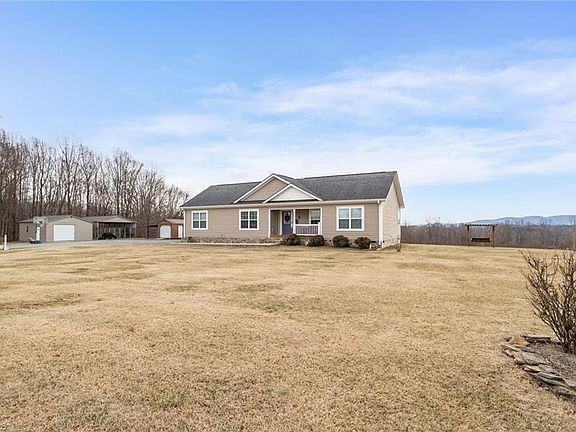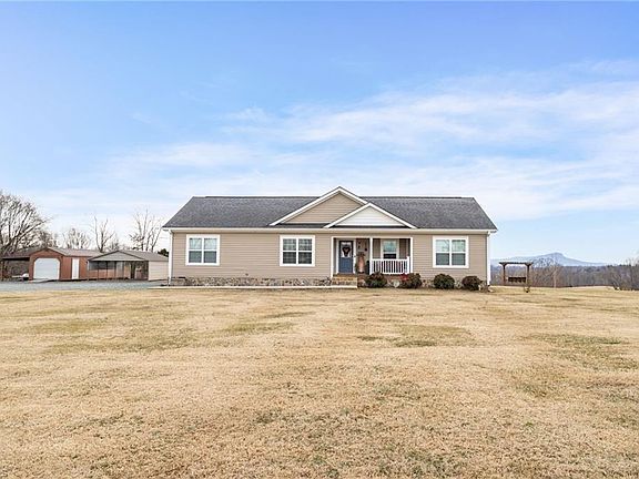 If you have been looking for Privacy and a Million $$ View Of Pilot Mountain and Hanging Rock-today is your lucky day. Discover your own private haven on this breathtaking 17-acre mountain-view property! Nestled in seclusion, this ranch-style modular home is in impeccable condition, w/3 spacious bedrooms, 2 bathrooms, and a large kitchen with a pantry, a generous island, and awe-inspiring views of three majestic mountains. The primary suite is a true retreat with dual sinks, a soaking tub, and a separate shower. Step outside to enjoy paradise w/ a sturdy metal shop (22x26) w/concrete floor, double carport ideal for RV parking 24x30, and a storage building 12x24 w/ a convenient lean-to & 24x24 carport. The land is a combination of open land & wooded land w/over 1500 Feet- road frontage for building addt'l homes. Perfectly situated off the road, this serene property offers unmatched privacy,stunning scenery, & room to live,explore, & relax. A rare gem for those seeking peace and beauty!