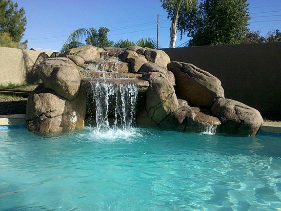 REGULAR SALE!!! Beautifully remodeled home, 2 tone paint, carpet,travertine, light fixtures, outlets, complete landscaping, big replastered pool with new HUGE rock waterfall with grotto, large grass area ($19K in pool and b-yard), big deck off master, big laundry with granite, fireplace, waterfall and pool light on remote..turn on/off from deck, jacuzzi tub,house faces the right way for year round enjoyment, bathroom mirror ordered, stove coming, garage will be epoxy and new sunscreens coming, SHOW AND SELL!