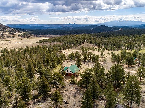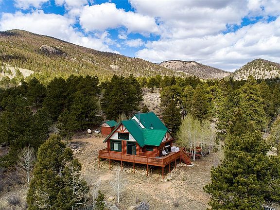 Gorgeous mountain retreat nestled against Pike National Forest, close to skiing, hiking, camping, Eleven Mile and Antero Reservoirs and the Florissant Fossil Beds. Walking in the front door from the 10 x 5 covered porch, you'll love the open concept with a 11 x 9 foyer & loft, maple hardwood floors, wood burning stove & vaulted beamed ceilings with spectacular views. The main level has the living room/dining area with a walk-out to the wrap-around 67 x 9 patio with endless views. There's also a separate dining area with a walk-out that opens to the eat-in kitchen along with 2 bedrooms. laundry room and a 3/4 bath also on the main level. Upstairs you'll find the loft that looks over the lower level with more amazing views, making it a great place to just relax and read a book. The master bedroom is on the upper level and has his and her walk-in closets that are 4.8 x 11.6 and a 4.8 x 9.7. There's also a 5-piece bath with a jetted-tub and skylight. Don't miss out on owning this truly one-of-a-kind home! The wood fireplace reburns smoke and makes up air from outside. Well pumps 3 gallons a minute but can pump up to 9 (county said they would put restrictions on water use so they have it listed at 3). Propane is on a month to month lease and averages $300 a year. Satellite Wi-FI. There are 2 Fire Departments near the home. Measurement are approximate, to be verified by buyer. NOTE: This home sits on 5.6 acres and there is a lot adjacent to it that is 5.5 acres which is also for sale (schedule # 45547) listed at $55k.