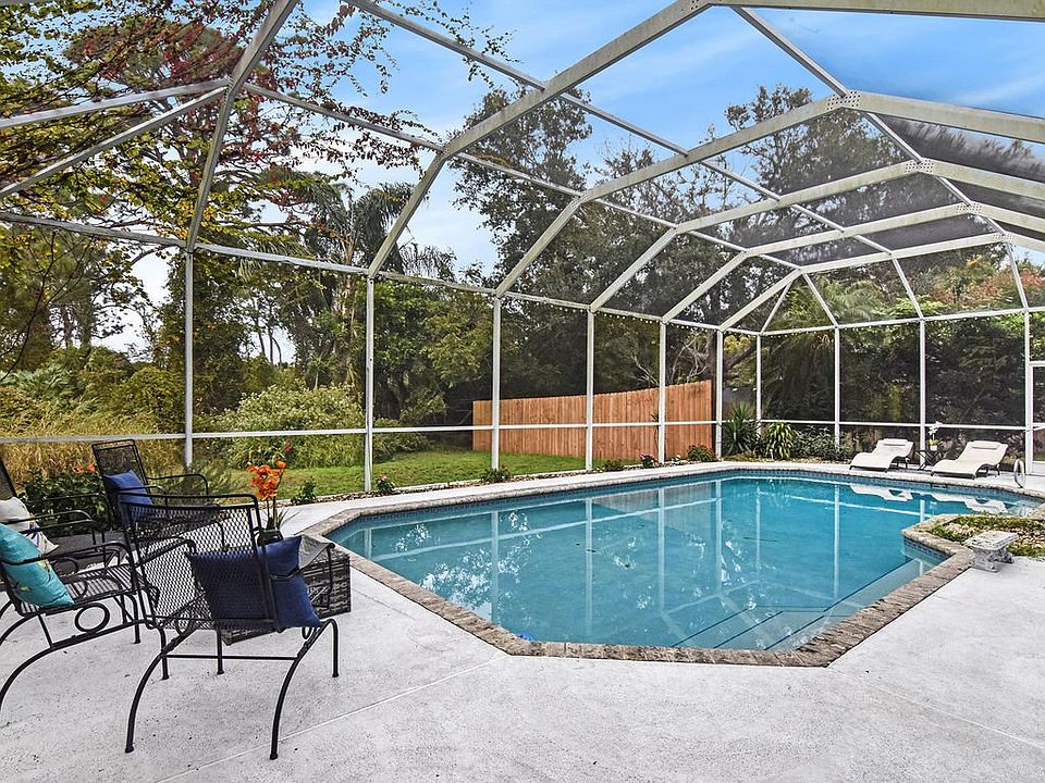 Come view this MOVE-IN ready, FRESHLY PAINTED 4 bedroom 3 FULL bath home in the desired Twin Towers Subdivision in South Merritt Island. Perfect for a large family! Home features newer ENGINEERED HARDWOOD FLOORING in dining and family rooms, GRANITE countertops in the kitchen, and STAINLESS STEEL appliances. Enjoy entertaining your guests from your large LANAI and SUMMER KITCHEN overlooking your sparkling POOL. The wooded backyard view adds additional privacy. Neighborhood boasts beautiful mature trees throughout and a COMMUNITY DOCK on Indian River where you can spend your evenings spotting dolphins!