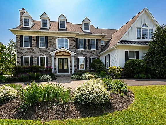 This magnificent custom built stone-front home with over 7000 Square Feet captivates all with remote privacy and impeccable custom details throughout. Located in the prestigious and desirable neighborhood of Springhouse Farm, this 6 bedroom, 4.2-bathroom luxurious home has everything you need to live happily ever after! As you drive up the circular driveway to the grand main entrance, you are surrounded by beautifully maintained hedges and vibrant foliage in the lush front gardens. Entering the home through the double french doors with large glass panes, you are greeted by a vast two-story center hall foyer detailed with glistening hardwood flooring and tasteful crown molding. Directly off the foyer to your left sits an elegant living room adorned with a marble surround gas burning fireplace, plush carpeting, and crown molding. The living room leads you to the glass French doors of the private home office in the rear of the home that sits adjacent to an elegant powder room. Make your way back to the foyer and cross the center hall to formal dining room that has hardwood flooring and plenty of crown molding. Nestled in the back of the home sits your gourmet eat-in kitchen featuring sleek granite countertops, commercial-grade stainless steel appliances, a plethora of wooden cabinetry, a large center granite-topped island with barstool seating, masterfully finished tiled flooring and backsplash, and a butler’s pantry. Artistic tiling leads you to the breakfast room offering captivating views of the backyard and providing you with direct access to the substantial multi-leveled flagstone back patio. Open to the kitchen and breakfast area, the magnificent great room is decorated with a vaulted ceiling, marble-surround wood-burning fireplace, custom built-in shelving, and extra-large windows. Rounding out the first floor is connected three-car garage access, tiled mudroom, another powder room and a practical back stairway with second-floor access. Take the staircase of your choice up to the second floor and find your way to the primary suite masterfully detailed with an intimate sitting area, dual walk-in closets, and recessed lighting. The exclusive ensuite bath is equipped with two stand-alone vanities, a soaking tub, and a glass-enclosed tiled shower. Four additional bedrooms can be found on this floor each with lush carpeting and ample closet space. All four bedrooms share a jack-and-jill bathroom. This floor is complete with a quaint reading nook and a laundry room providing cabinet storage space and a convenient sink. Head up to the third level of this home to find a sixth bedroom however boasts plenty of square footage to accommodate a second office or playroom. The substantial lower level has everything you are looking for to host your next gathering of family and friends. The space includes an expansive wet bar with barstool seating and a sink, an immense living area, a fun-filled game room, a private in-home fitness studio, a full bathroom, and an immense amount of storage opportunities. Exit the home through the glass exterior door in the breakfast room to the comprehensive tree-lined rear yard, equipped with a custom paver patio perfect for entertaining with a built-in outdoor kitchen area, yards of rolling green grass, and pristine gardening beds. Invisible fence, Sonos wired throughout the house and outside on the patio, sprinkler system outside plus so many other upgrades included! Located in the award winning Wissahickon school district, this home is also within a few miles of countless golf courses, trails, restaurants and major shopping. Conveniently located near major highways and public transportation which makes commuting a breeze.
