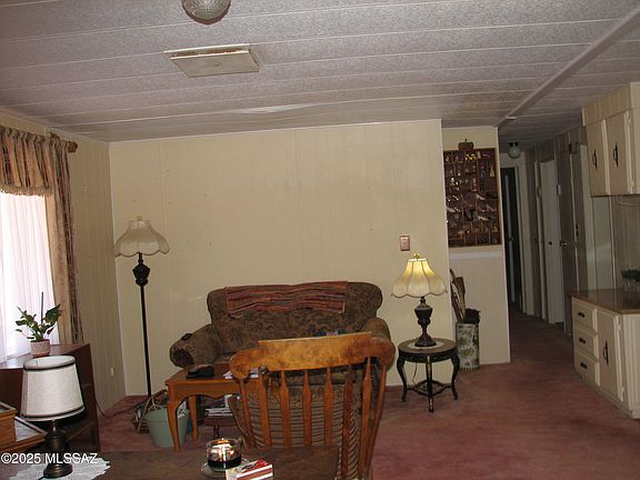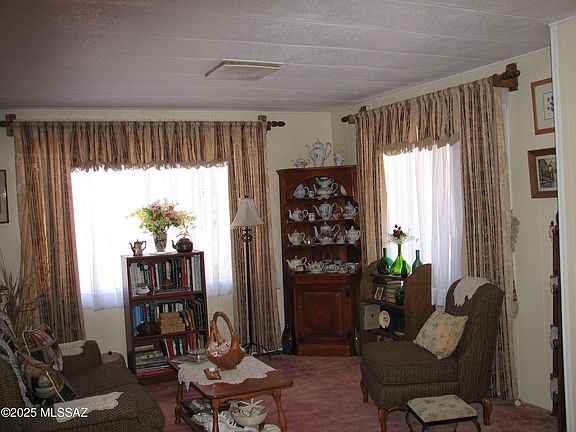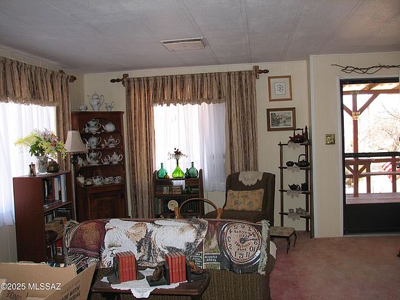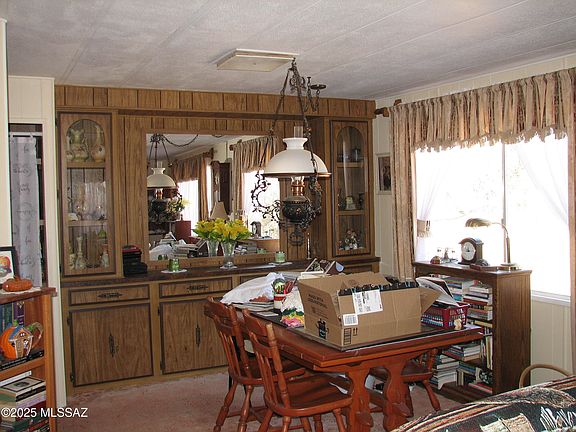 Two acres of B2 zoning ! One owner well maintained 2 bedroom 2 bath MFG. Spacious living area, dining area with builtin china hutch. Kitchen offers cabinets galore ! Covered front deck and covered rear patio slab. Detached studio/workshop. Freestanding metal storage building. Perfect for that home/business with commercial Benson B2 zoning! 2 Acre lot would allow additional Houses. Landscaped two acres needs some clean up but loads of mature plants !