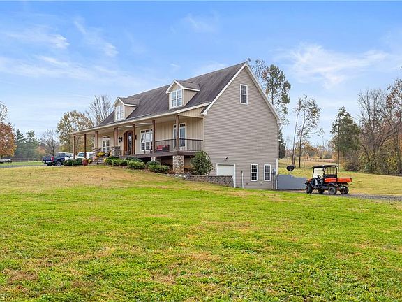Expansive turn-key equestrian center located minutes from the highway. 39 rolling acres, fenced, with approx. 25 acres cleared and established pasture. Custom home with scenic views. Hardwood flooring throughout. Full unfinished 2nd floor with permanent stairs is already plumbed for a bathroom. Unfinished basement features 9â ceilings, second laundry room, and expansive workshop. Bask in warm summer breezes on the covered front porch or the large, lighted rear deck. Ride the trails on horseback or enjoy swimming, kayaking, or fishing with over 200â of frontage on the beautiful Dan River. The farm features 8 fenced pastures with water and electric, 6 run-in sheds, large hay barn with lean-to for tractor and implement storage, shavings bin, and electric fence chargers. 5 stall barn with hot/cold water, wash stall, feed room, tack room, private runs on two stalls, & automatic waterers. 20x60m dressage arena with rubberized footing, sprinklers, and lights. Round pen with screenings.
