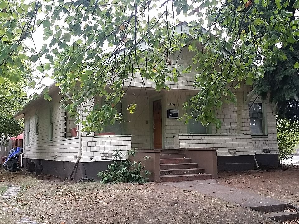 2 bedroom 1 bath Large front porch Big open living room area Hardwood floors Fireplace Large kitchen with lots of windows and natural light Gas range Clawfoot tub in the bathroom Forced gas heat furnace Basement with washer/dryer hookups Organic, raised bed gardens More room to add more garden space Fenced back yard Separate studio with sleeping loft and skylight 1/2 bath in the studio (sink and toilet, no shower). Classic Whiteaker bungalow Located near the breweries and lots of restaurants Bus stop near by Just a few blocks from the river One year lease required Some pets considered with additional deposits