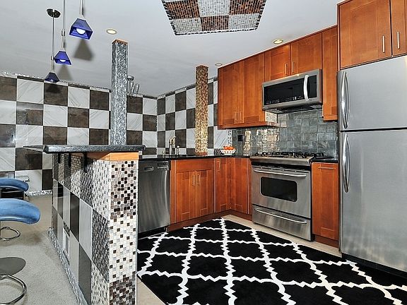 Spacious 3rd floor 2 Beds/2 Baths condo with designer's touch! Everything Updated! Kitchen with custom cabinets, breakfast bar, granite and all SS appliances. Master bed with bath and walk-in closet.Living room with HD 3D projector, retractable screen and built in speakers. Enjoy morning coffee or glass of wine on your private balcony. In unit laundry closet with washer and dryer. Newer heating/cooling unit and water heater. Elevator and Intercom. Located blocks away from NY Bus stop. Must See!