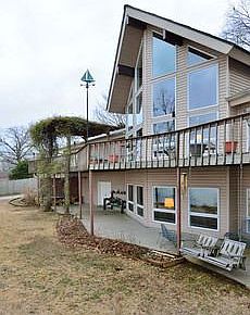 AFFORDABLE WATERFRONT HOME WITH AWESOME VIEW OF WILSON LAKE. THIS HIGHLY ENERGY EFFICIENT HOME FEATURES 5.5" R-21 INSULATED EXTERIOR WALLS, 9" R-31 INSULATED CEILING. SOLAR SCREENING FOR WINDOWS, 27 GAUGE GALVANIZED ALUMINUM ROOF WITH 50-YR GUARANTEE, RIDGE VENT. OPEN FOYER WITH HARDWOODS. GREAT ROOM WITH FLOOR TO CEILING STACKED RIVER ROCK WOOD BURNING FIREPLACE. TONGUE & GROVE PINE CEILING IN GR & LOFT WHICH HAS OAK BOOKCASES, DESK & BUILT-IN CABINETS. LOTS OF WINDOWS FOR LAKE VIEW. OPEN KITCHEN, BKFT AREA WITH ISLAND, BAR, SOLID SURFACE COUNTER TOPS, CABINETS WITH PULLOUTS, LAZY SUSAN, AND PANTRY. VAULTED CEILING WITH BEAMS AND FRENCH DOORS TO 71' TREATED PINE DECK. SPACIOUS MAIN LEVEL MASTER WITH LAKE VIEW & FRENCH DOORS TO DECK.LUX BATH W/ CORNER WHIRLPOOL TUB, SEP SHOWER, HIS & HER PEDESTAL SINKS & LG WALK-IN. 2ND MAIN LEVEL BR W/DBL CLOSET SERVICED BY HALL BATH. LOWER LEVEL DAYLIHT WALKOUT BASEMENT TO 60' CONCRETE PATIO COMP W/BRICK BBQ GRILL IDEAL FOR ENTERTAINING. LG BDRM W/ FRENCH DOORS TO PATIO. STORM RM AND LARGE WORKSHOP WITH LG FAM RM OR REC RM W/ STACKED RIVER ROCK FIREPLACE. LOTS OF WORK BENCHES. LAKE FED IRRIGATION SYS, PRIV FENCES ON EACH SIDE. STORAGE & MORE.