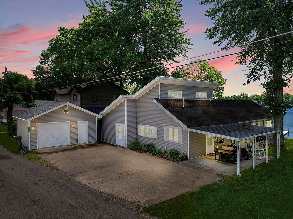 Back on market by no fault of the seller!! Buyers financing fell through. Motivated Seller!! Spacious open concept home on scenic Lake of the Woods, a 136 acre 1-4pm ski lake. Beautiful level lot with a fantastic view. Gorgeous concrete seawall and patio to enjoy your 2 piers and 70 ft of pristine frontage. This home has a great kitchen with stainless appliances and quartz countertops. Enjoy spectacular lake views from both the family room and living room. The home has 2 full baths and 2 bedrooms with a spacious loft to have for overflow guests. There is a great 2 car garage and an additional carport for your golf cart. This is truly a unique property.